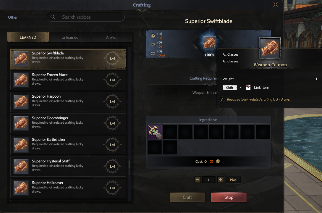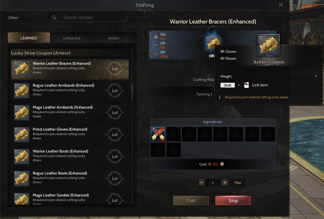 12) Craft "Other" sekmesine, "Weapon Coupon", "Armor Coupon" ve "Accessory Coupon" eklenmiştir. Eşyanızın seviyesine göre, elde edeceğiniz kupon sayısı artrmaktadır. Bu kuponları, Craft'a özel açılacak olan Lucky Draw etkinliklerinde kullanabileceksiniz.